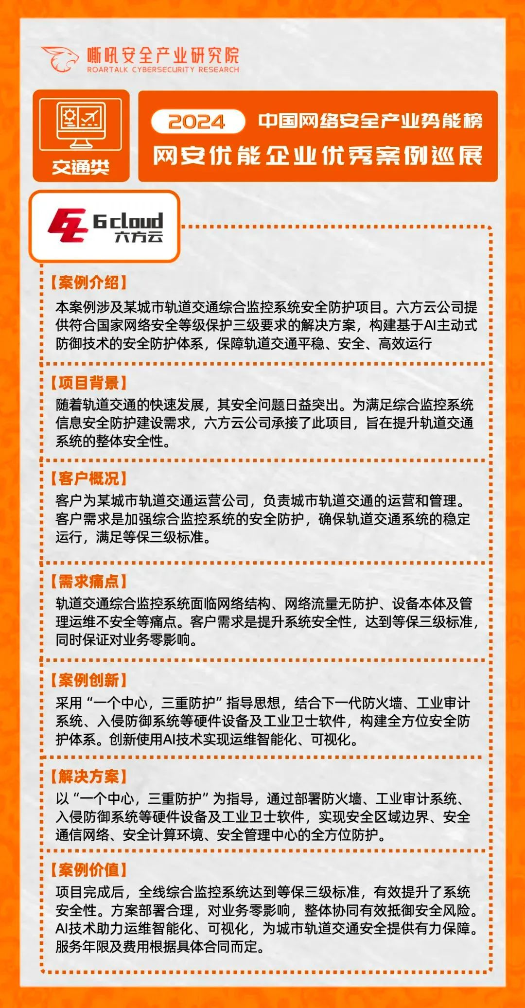 随着城市轨道交通的迅猛发展,轨道交通系统的复杂性日益提升,网络安全风险也随之愈发严峻。面对这一挑战,六方云凭借其深厚的网络安全技术积累和产品创新,为轨道交通行业量身打造了一套基于AI主动式防御技术的安全防护体系。 六方云深知网络安全威胁的多样性和隐蔽性,传统的防御手段已难以应对日益复杂的网络攻击。因此,六方云在解决方案中引入了先进的人工智能技术。通过AI算法,能够实时捕捉和分析网络中的海量数据,快速识别异常行为,主动发现和防御潜在的网络安全威胁。这种主动式的防御方式,不仅提高了安全防御的精准度,还显著提升了系统的响应速度和运维效率。在此基础上,六方云构建了一个中心、三重防护的全方位安全防护体系。这一体系涵盖了安全区域边界、安全通信网络、安全计算环境以及安全管理中心等多个层面,确保轨道交通系统在各个维度都能得到充分的保护。这种全方位的安全防护体系,能够有效抵御来自不同层面的安全威胁,确保轨道交通系统的整体安全性。 在实际应用中,不仅大幅提升了轨道交通系统的安全性,还通过智能化的运维和可视化的管理手段,极大地降低了系统的运维成本和管理难度。运维人员可以通过直观的界面实时监控系统状态,快速定位并处理潜在的安全问题,从而确保轨道交通系统的稳定运行。 此次登榜不仅是对六方云技术实力和市场影响力的认可,更是对六方云在推动交通行业网络安全发展方面所做出的重要贡献的肯定。未来,六方云将继续致力于网络安全领域的创新和发展,不断推出更加先进、更加可靠的网络安全产品和解决方案,为工业互联网的安全发展贡献自己的力量。